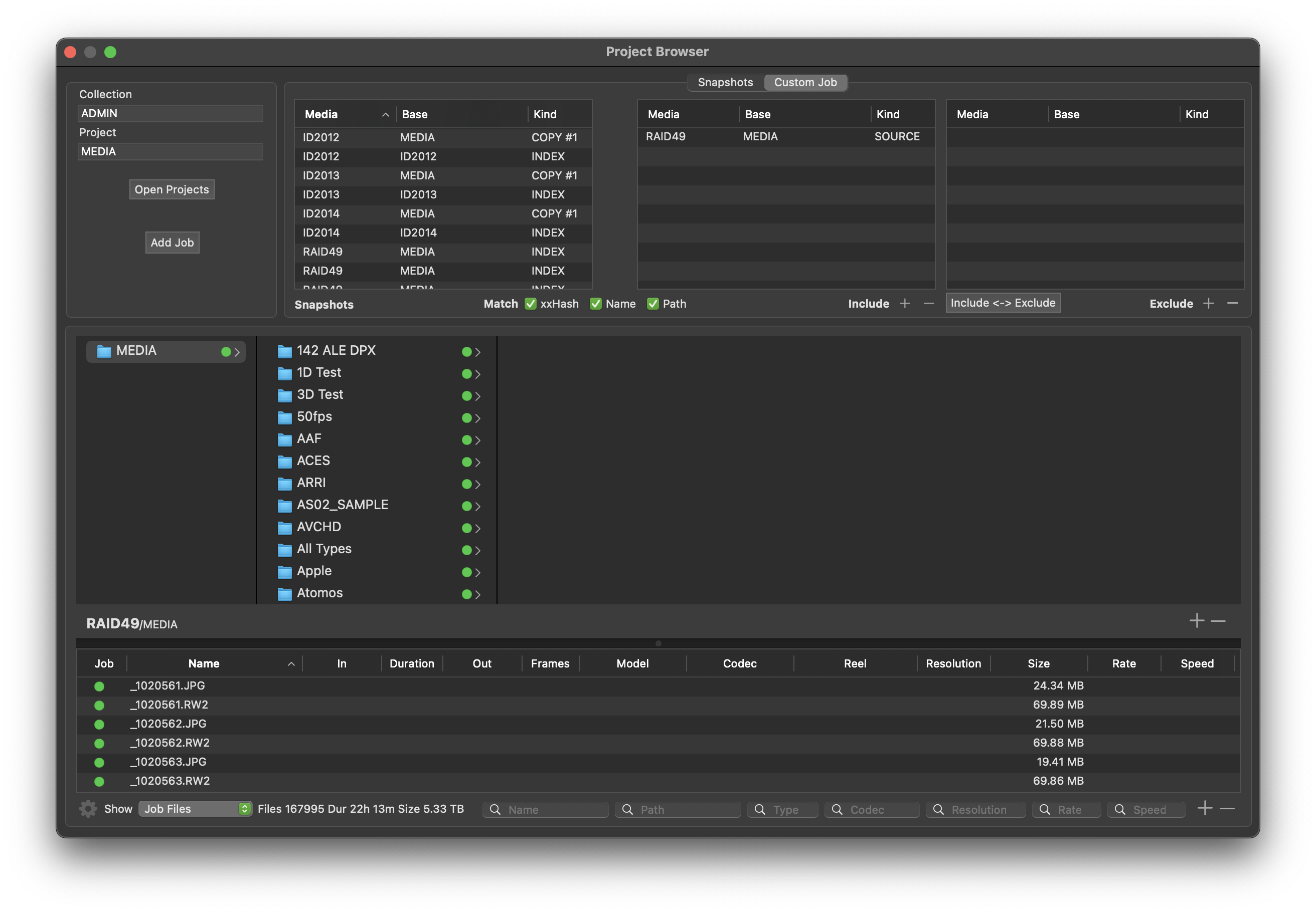 When YoYotta compares the included files against the excluded files it compares xxHash checksum, file name and path. See the xxHash, Name and Path checkboxes in Custom Job panel.