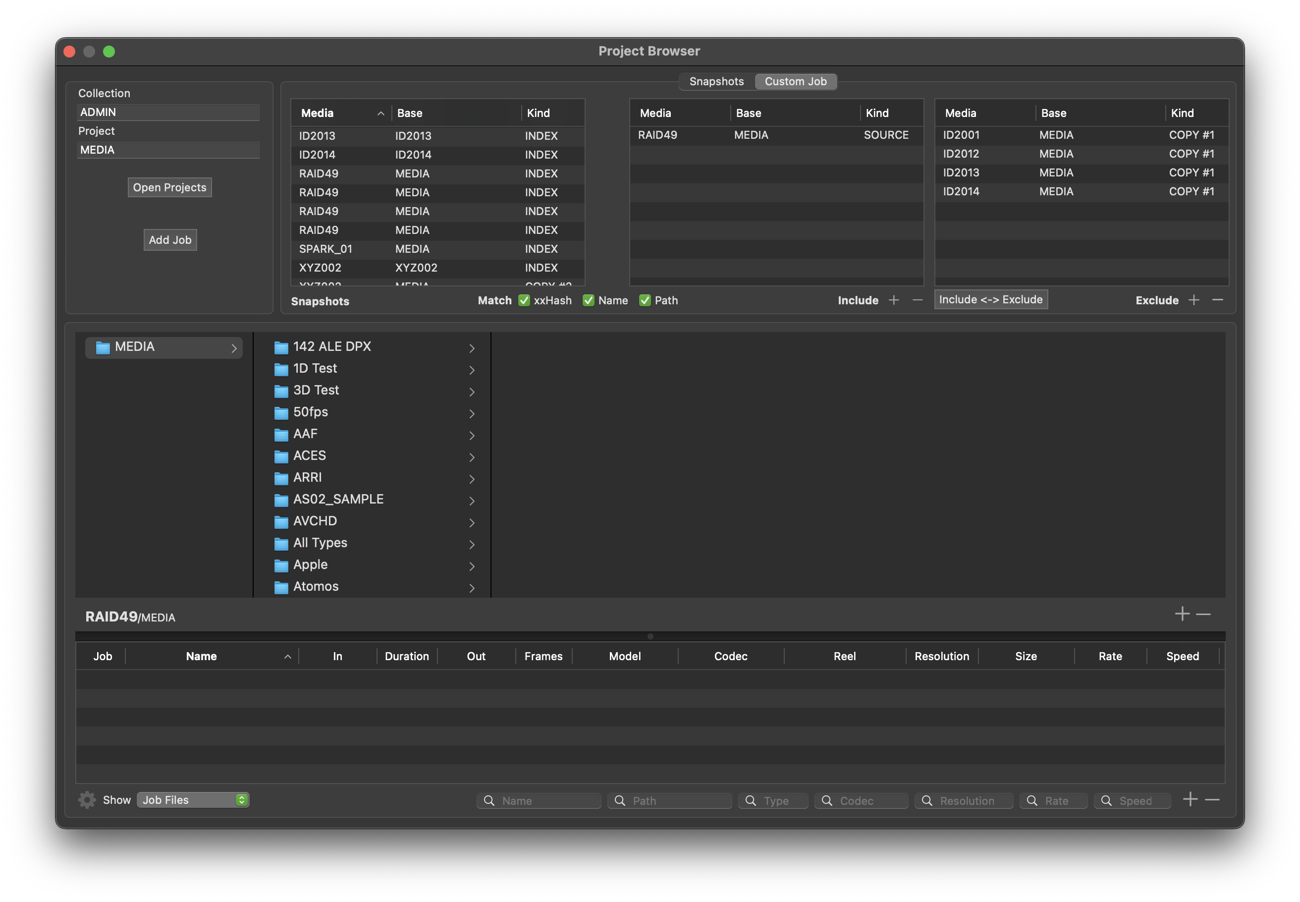 The Custom Job tab in the Project Browser allows multiple snapshots to be compared.