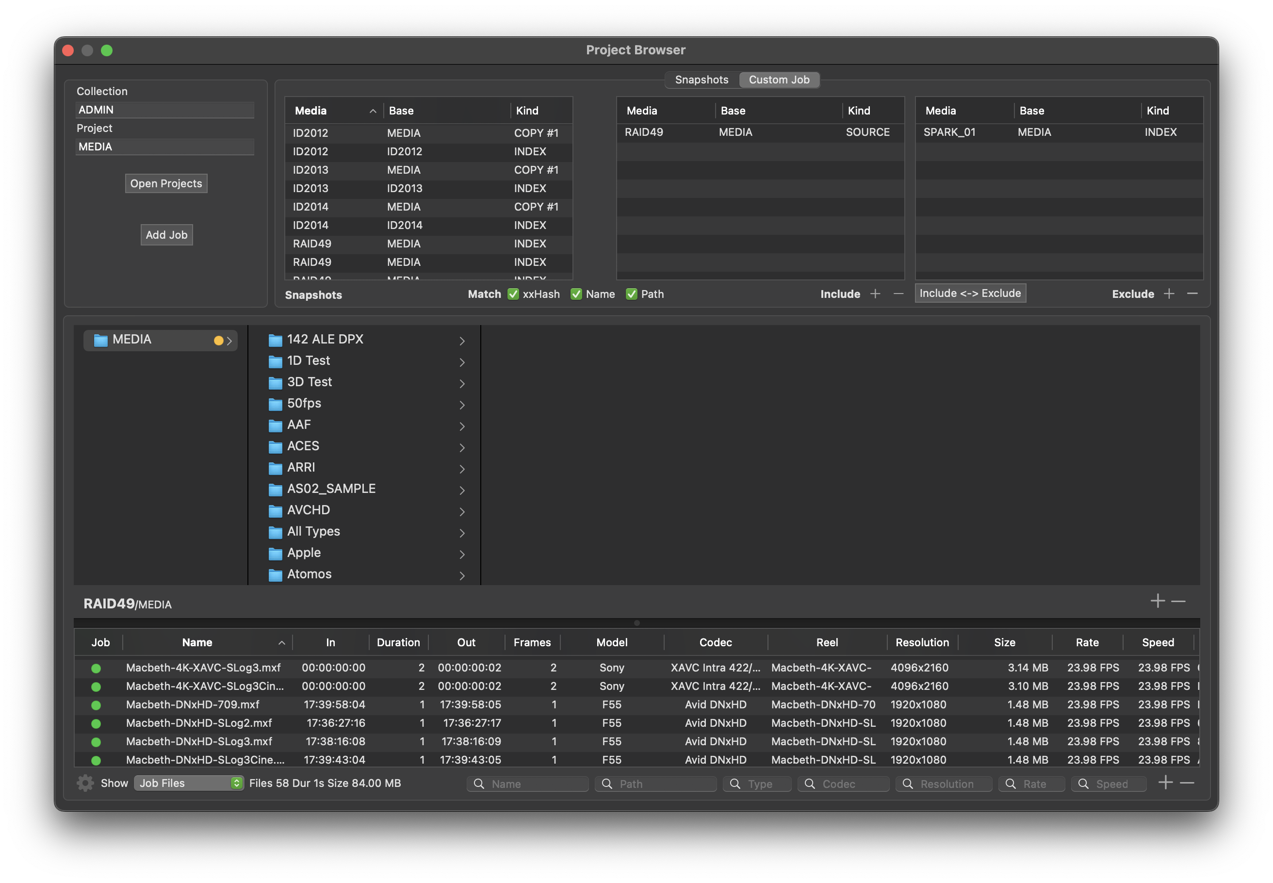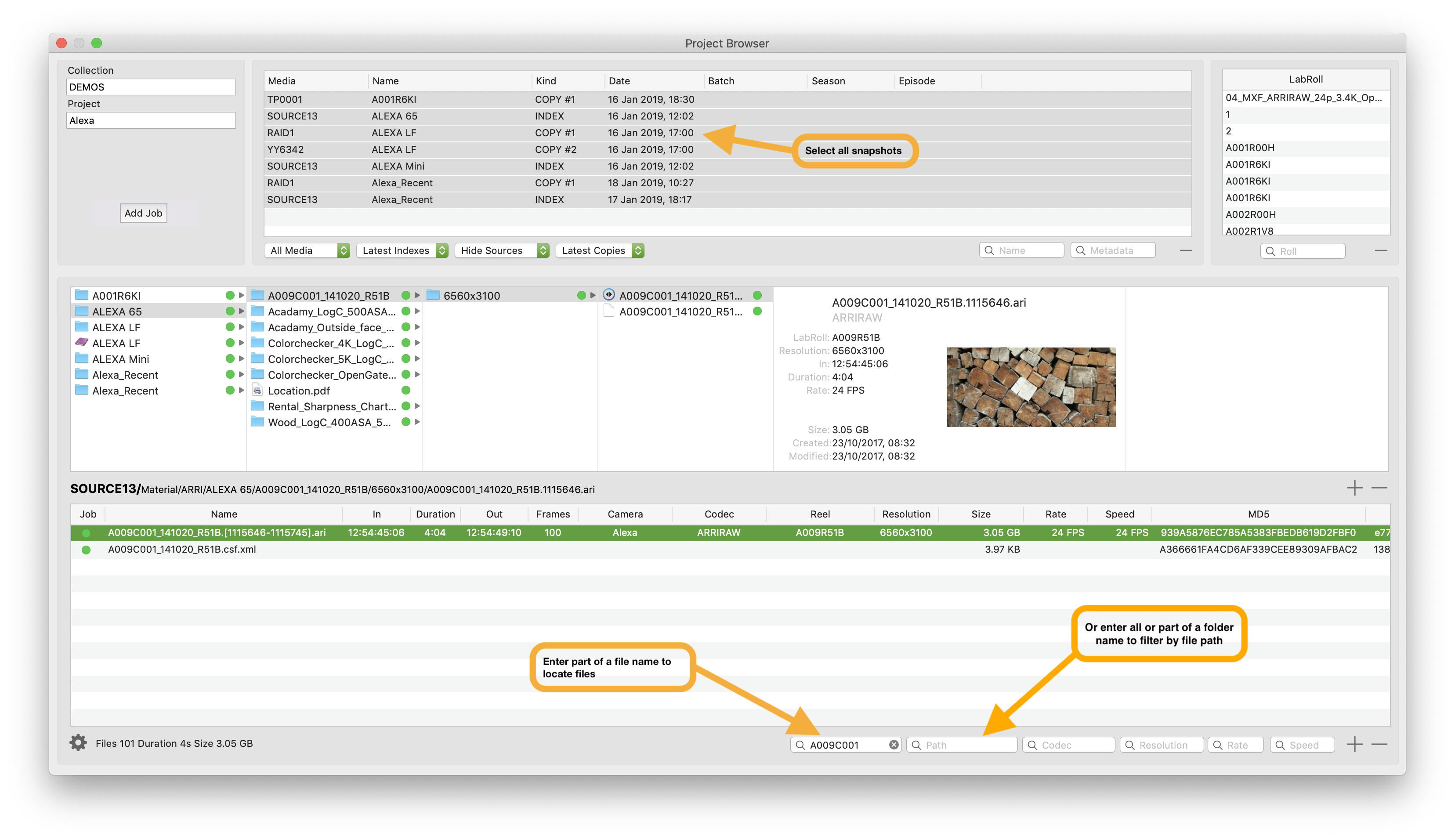 You can also filter by file path, codec, resolution, video rate or camera speed, for example entering 3840 in the