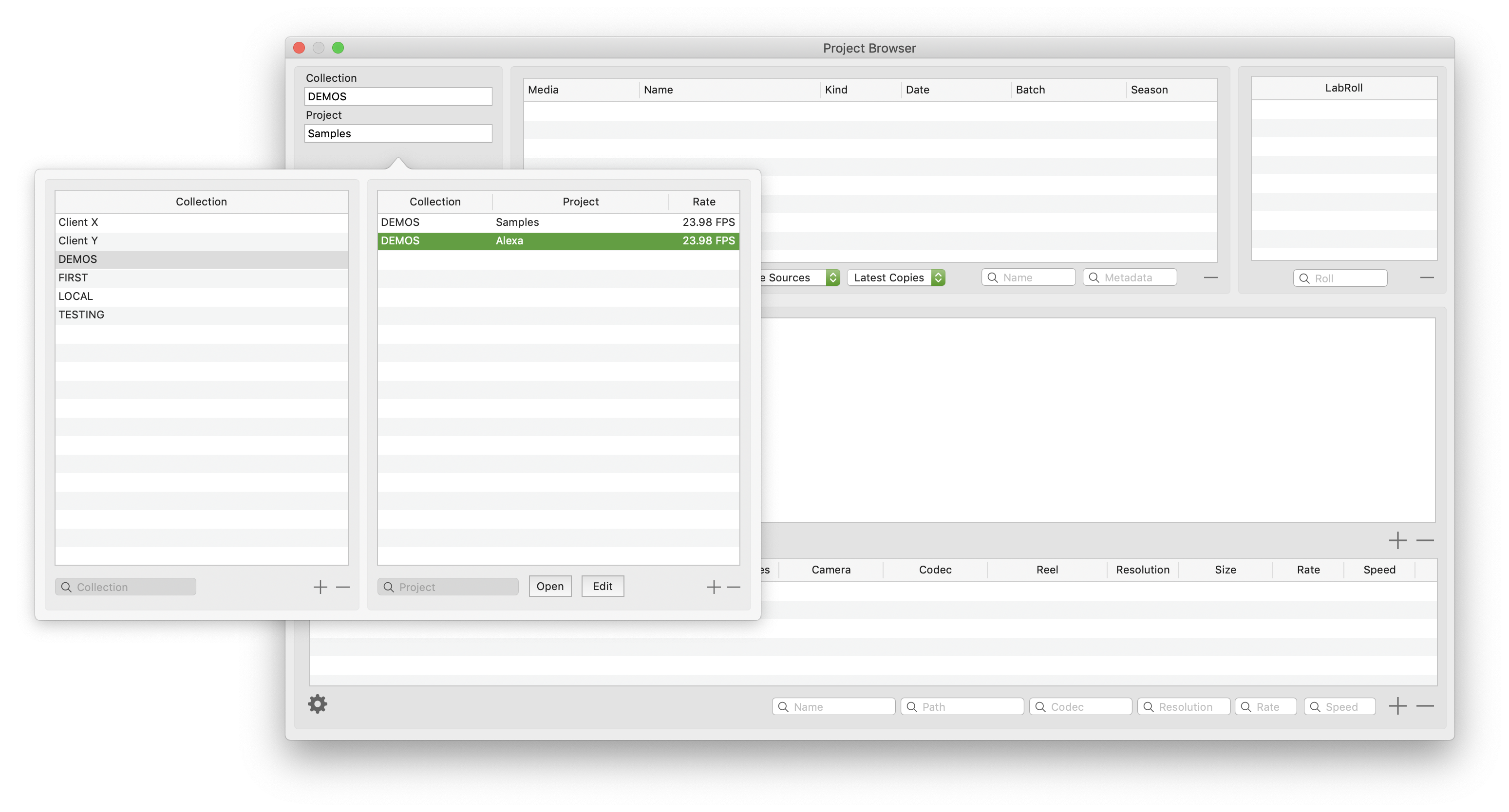 Click the book icon at the bottom of the main panel to open the Project Browser.