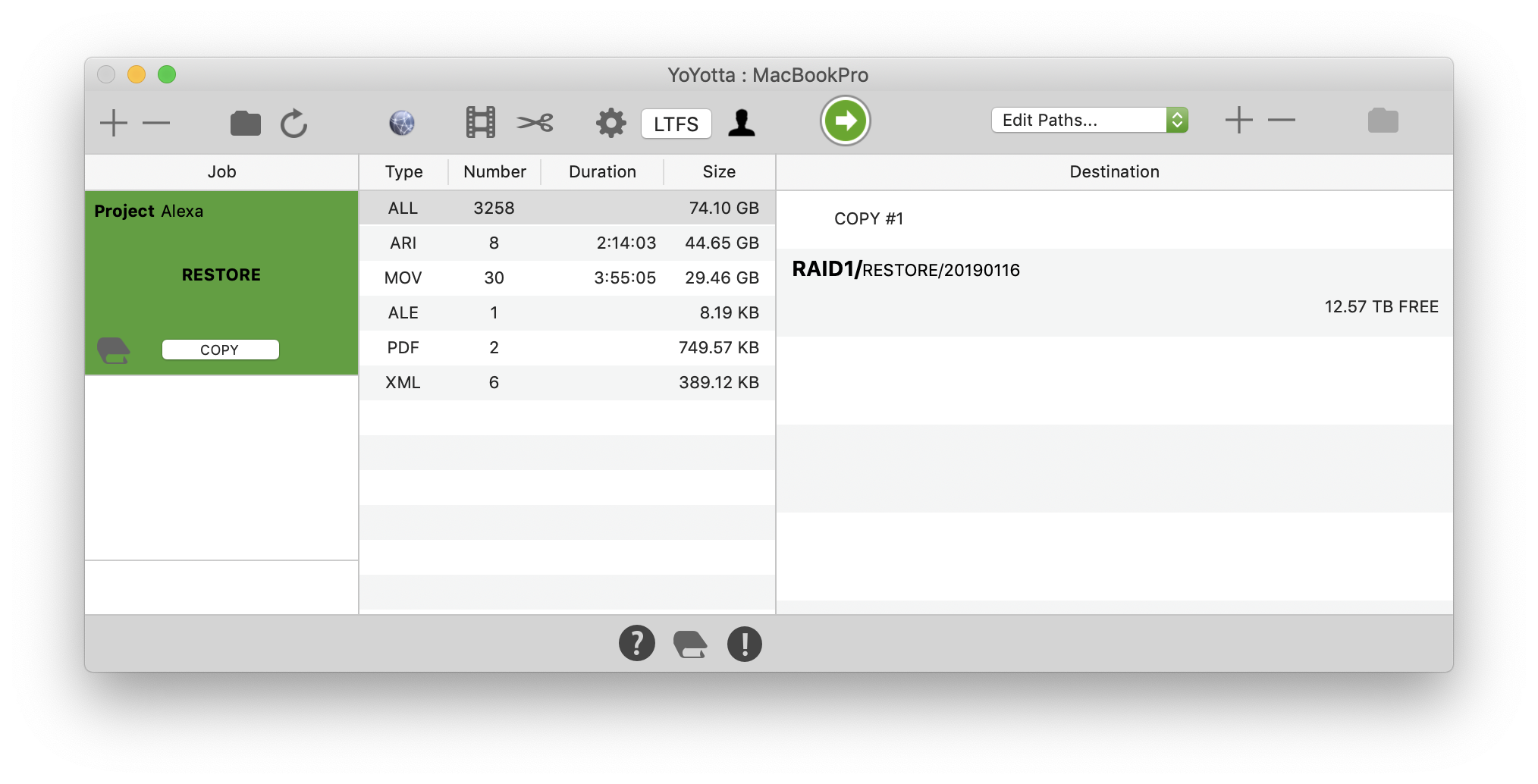 Here a source snapshot of the MEDIA folder on RAID49 is compared with a spanned copy written to four LTO tapes.