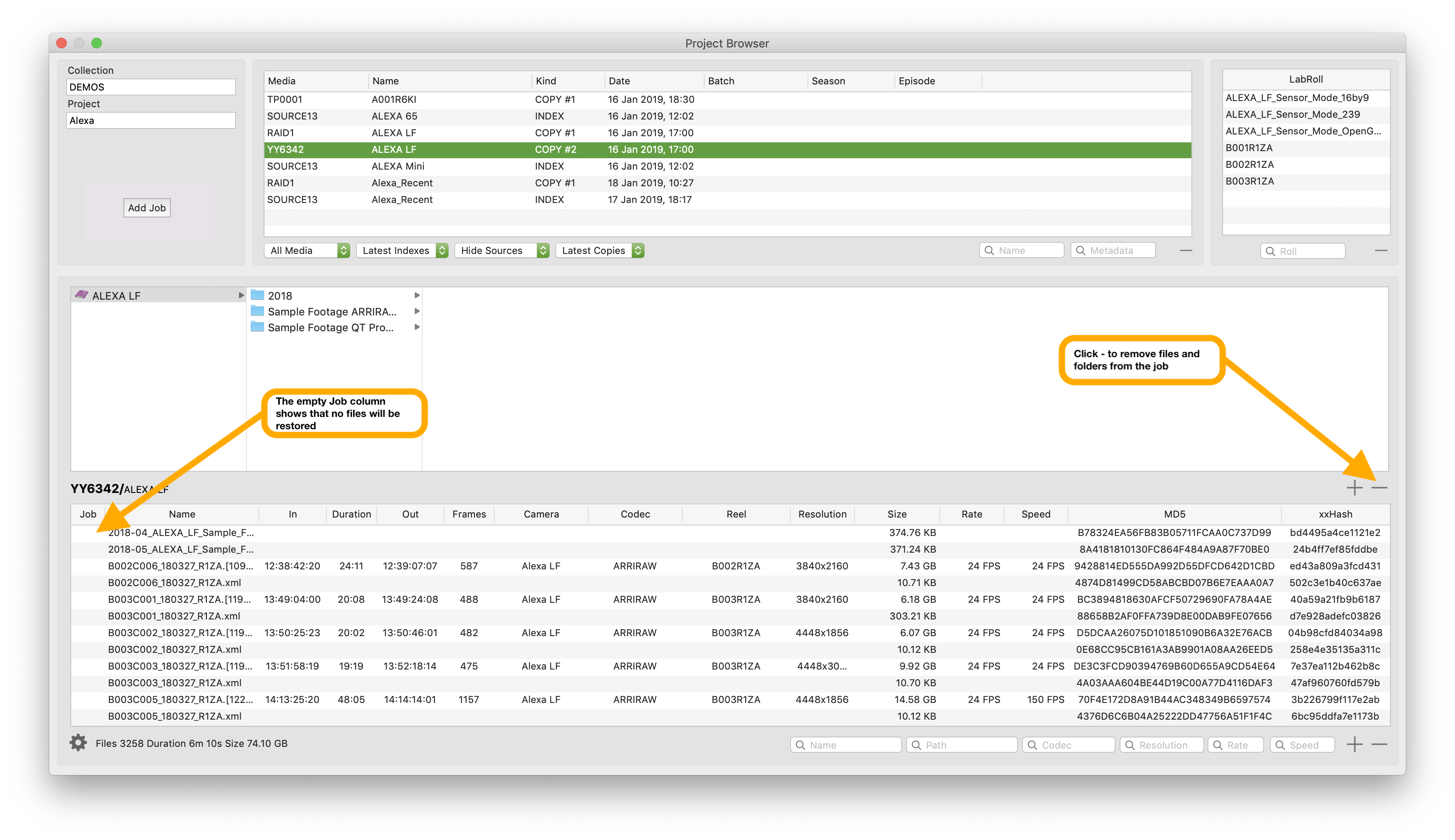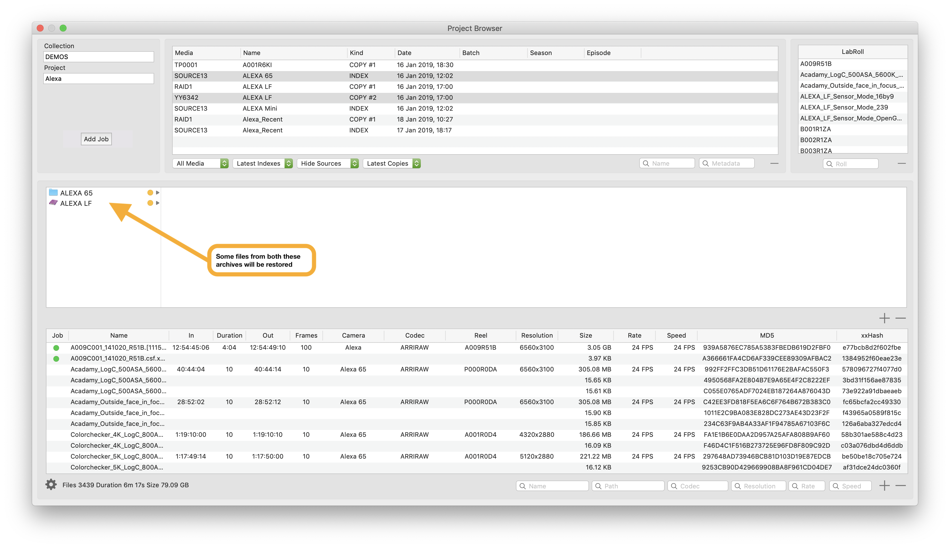 The table now shows the files that are in the MEDIA folder, but are not yet on the archive tapes.